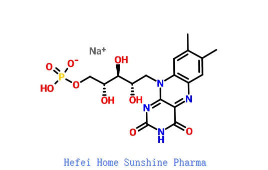 Riboflavin 5-Phophat (FMN) ist als Coenzym in verschiedenen enzymatischen Reaktionen im Körper unerlässlich und wird daher in Form seiner Salze, insbesondere in Form von Natrium FMN, verwendet.als Zusatzstoff für Arzneimittel und Lebensmittel für Mensch und TierSodium FMN wird auch als Ausgangsstoff für Flavin-Adenin-Dinukleotid verwendet, das zur Behandlung von Vitamin-B2-Mangel eingesetzt wird.Riboflavin-5-Phosphat Natrium ist in der Luft relativ stabil, aber hygroskopisch und empfindlich gegenüber Hitze und LichtDas Produkt darf ab dem Herstellungsdatum 33 Monate im unveröffneten Originalbehälter bei einer Temperatur unter 15 °C gelagert werden.