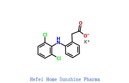Diclofenac Kaliumsalz ist eine nichtsteroidale entzündungshemmende Verbindung und ein Decykloxygenase (COX) -Hemmer.Es ist ein nichtsteroidales entzündungshemmendes Mittel, das zur Verringerung der Entzündung und als Analgetikum zur Schmerzlinderung bei bestimmten Erkrankungen eingesetzt werden kann.Es kann auch zur Behandlung von Dysmenorrhoe eingesetzt werden. Es kann entzündliche Erkrankungen wie Muskel-Skelett-Beschwerden, Zahnschmerzen, Arthritis, aktinische Keratose, Gelenkschmerzen,akute und chronische Schmerzen, die durch bestimmte Krebsarten verursacht werden.Nach traditioneller Auffassung wirkt Diclofenac durch die Hemmung der Prostaglandinsynthese, indem es Cyclooxygenase-1 (COX-1) und Cyclooxygenase-2 (COX-2) mit relativer Equipotivität hemmt.Jüngste Studien haben jedoch gezeigt, dass die pharmakologische Aktivität von Diclofenac über die COX-Hemmung hinausgeht und multimodale und in einigen Fällen neuartige Wirkmechanismen (MOA) umfasst.Zum Beispiel:, Forschungsergebnisse deuten darauf hin, dass Diclofenac den Thromboxan-Prostanoidrezeptor hemmen, die Freisetzung und Aufnahme von Arachidonsäure beeinflussen, Lipoxygenase-Enzyme hemmen kann,und aktivieren den antinociceptiven Weg von StickstoffmonoxidAndere neue MOA können die Hemmung von Substrat P, die Hemmung von Peroxisomproliferator-aktivierten Rezeptoren gamma (PPARγ), die Blockierung von Säure-sensorischen Ionenkanälen,Veränderung der Interleukin-6-Produktion, und die Hemmung der N-Methyl-D-Aspartat-Rezeptorhyperalgesie (NMDA).