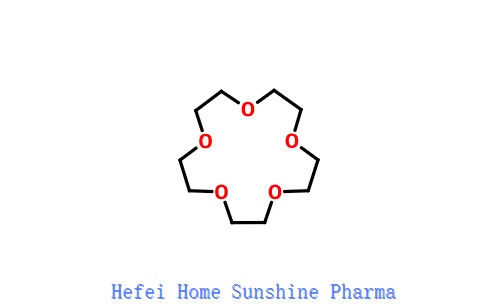 15-Crown-5 ist ein Kronenether mit der Formel (C2H4O) 5. Es ist ein zyklischer Pentamer von Ethylenoxid, der mit verschiedenen Kationen, einschließlich Natrium (Na+) und Kalium (K+), jedochEs ergänzt Na+ und ist somit selektiver für Na+-Ionen.
