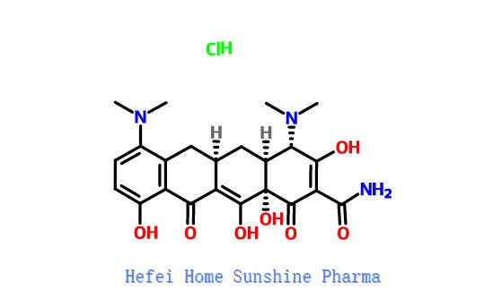 Minocyclinhydrochlorid ist ein Salz, das aus Minocyclin hergestellt wird.Vorteile der beiden grundlegenden Dimethylamingruppen, die protonieren und leicht ein Salz aus Salzsäurelösungen bildenDas Hydrochlorid ist die bevorzugte Formulierung für pharmazeutische Anwendungen.Minocyclin zeigt eine breit gefächerte antibakterielle und antiprotozoale Aktivität und wirkt durch Bindung an die 30S- und 50S-Ribosom-Untereinheiten., die Proteinsynthese blockiert.